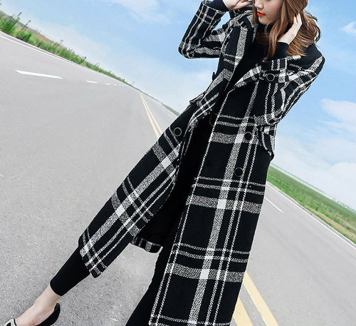 チェック柄はスーパーロングコートで大胆に投入してみては?