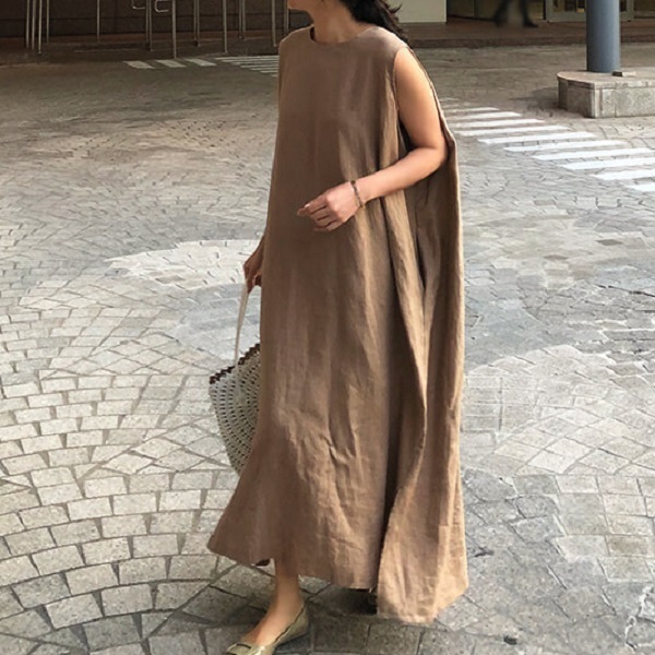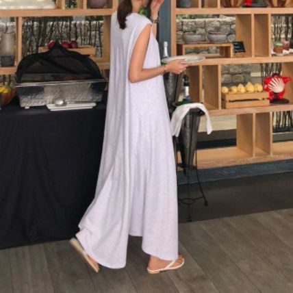 ワンピース Tシャツ フレア ノースリーブ ロング