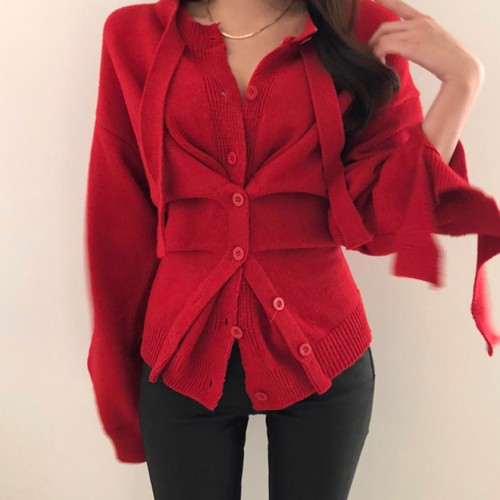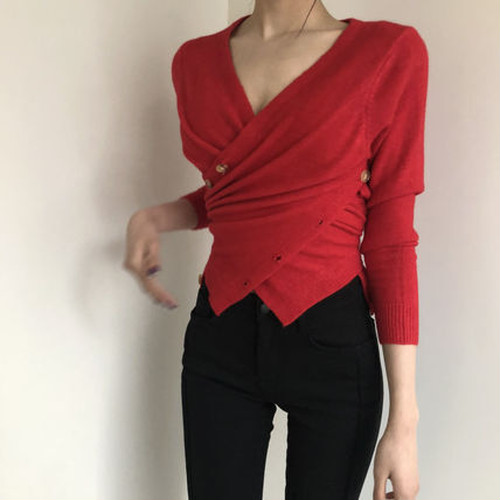 ニット カーディガン Wボタン タイト