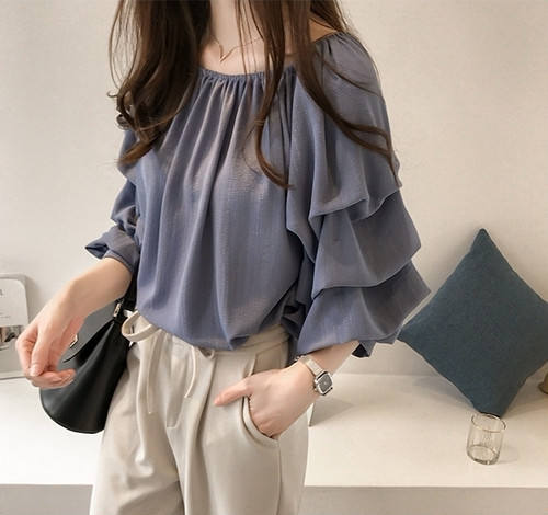 ブラウス ボリューム袖 ゴムネック フェミニン