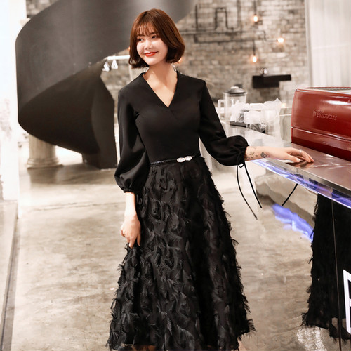 ロングドレス☆タッセル「ハート柄」ワンピ シンプルブラック