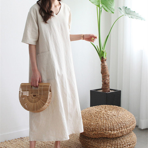 今回紹介するのは「体型カバーワンピース」リネン素材でゆったりとし爽やかな着こなしができるので