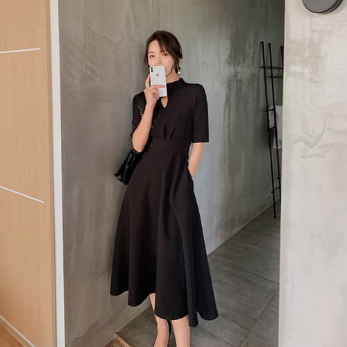 ワンピース ブラック 上品 シンプル ウエストマーク