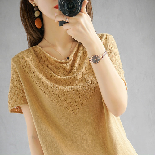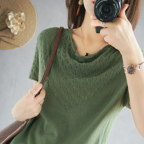 アースカラー 編み模様 ルーズネック サマー セーター4色