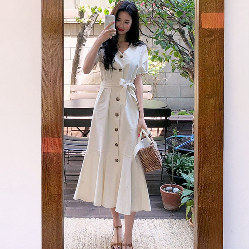 ワンピース サマードレス 背中魅せ ひざ下 フレア 夏 お出掛け
