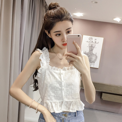 パンチング刺繍 キャミソール フリル ボタン