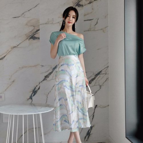 ツーピース ワンショルダー プルオーバー プリントスカート