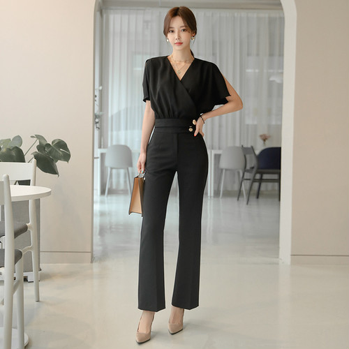 ハイウエストにポイントをおき、 ブラック一色でまとめたシックなセットアップです。 着用しただけで足のラインを長くキレイに見せるため、 誰でも簡単にスタイルアップが叶うでしょう。