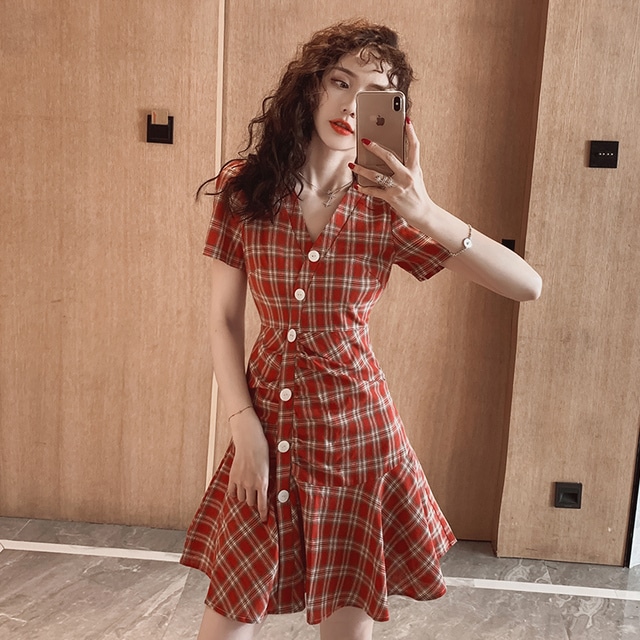 着るだけで元気が出そうなチェックのミニワンピ!