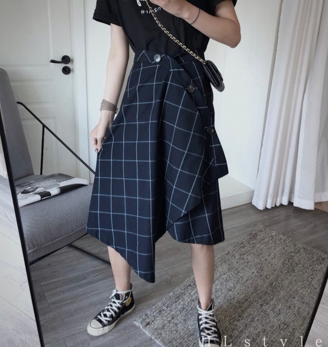 クールにもスポーティーにも着こなせますが、 着こなしによってはセクシーさも演出できるでしょう。 格子が入っているからこそスカートの変わったデザイン性が際立ち 、他にはないシルエットを強調しています。
