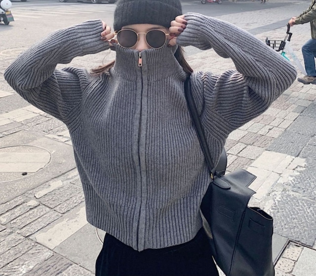 ショート丈のカーディガンですが、首元までジップアップできるので、寒い日にも安心♪1枚で着こなせるので、ちょっとした外出にも使えるアイテムです。