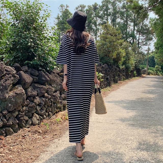 薄着になる夏でも体のラインを目立たせたくない方は、 ラフだけどおしゃれに見えるボーダーワンピを試してみてください 。