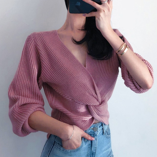 カシュクール風のニットのようでありながらも、ウエスト部分をギュッとツイストさせた他にはないデザインです。ツイストしてアクセントをつけたことで、ウエストがより引き締まって見えるように。袖がゆったりしているぶん、コントラストによって華奢に感じられるでしょう。胸元を大きく開き、お腹をチラリと見せることでセクシーに着こなせるように。インナーを着ると雰囲気はガラリと変わりますし、前後を逆に着てもOK!ツイスト部分を背中側にすると、スクエアネックのニットに早変わりします。シンプルに見えながらも抜け感があるから、ユニークなコーデも可能に♪カラーは3色あるので、色ち買いもおすすめです。