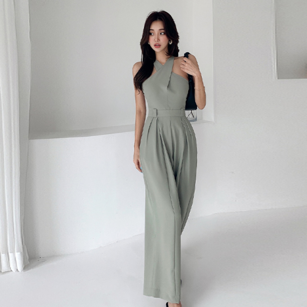 きれいなお姉さん風のロンパーは、裾がフレアになったワイドパンツで大人クールに!しっかりとタックが入っているので、カジュアルなパーティーにも合わせやすいデザインです。
