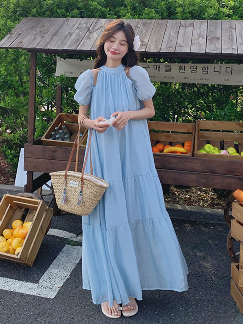 涼しげなブルーワンピで、お出かけやリラックスシーンを存分に楽しんでくださいね。