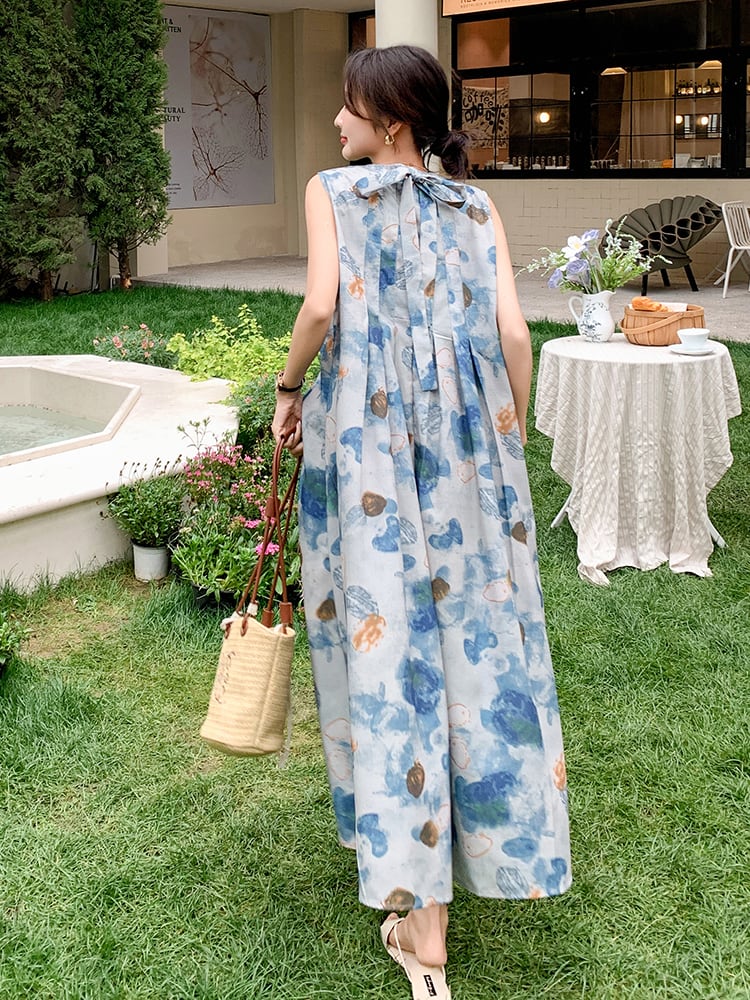 アートな水彩柄みたいなブルーが印象的なワンピは、どこかノスタルジックな気分にさせてくれる夏にピッタリ!