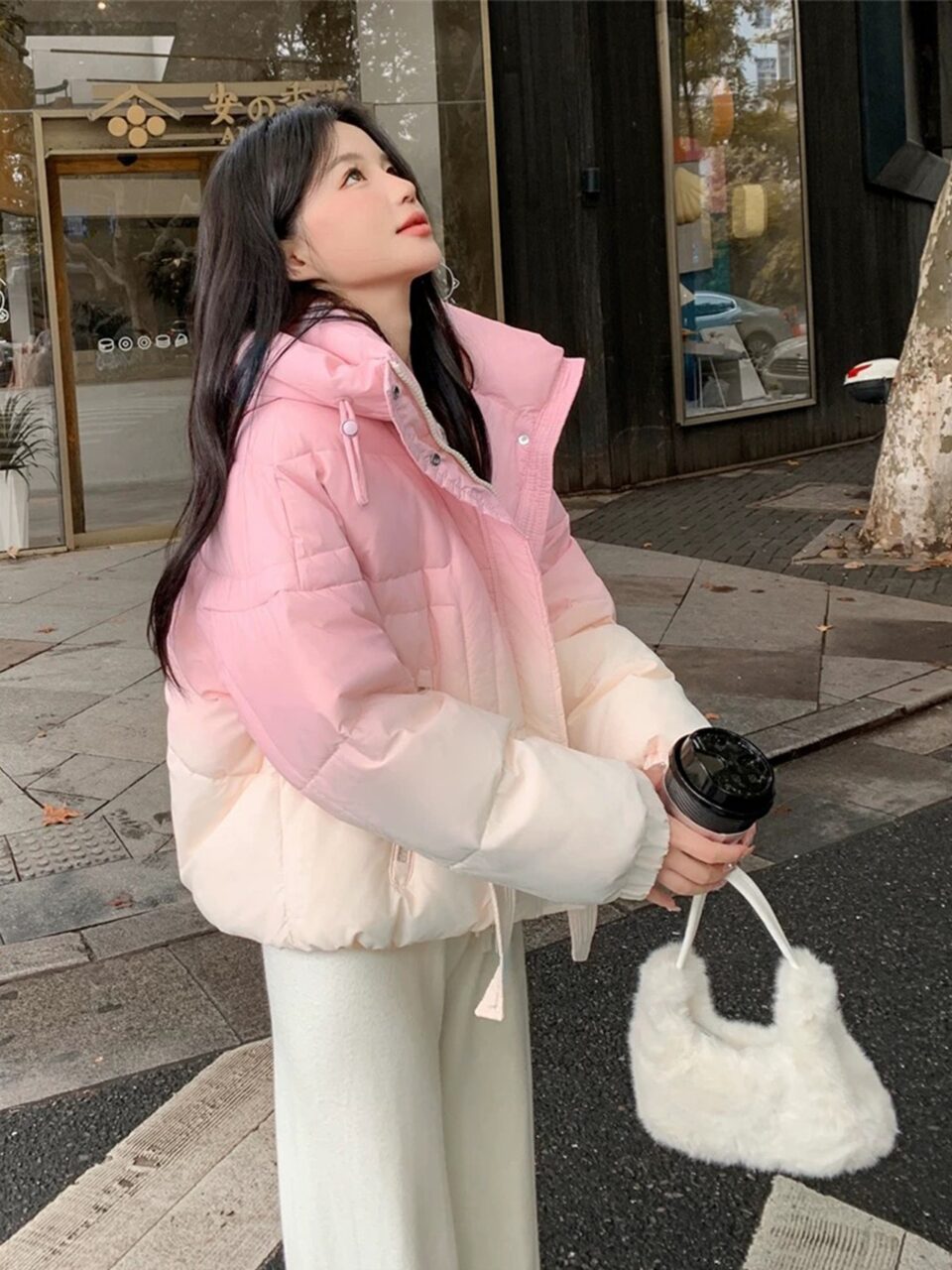 ピンク×ホワイトグラデのダウンジャケットが可愛い!