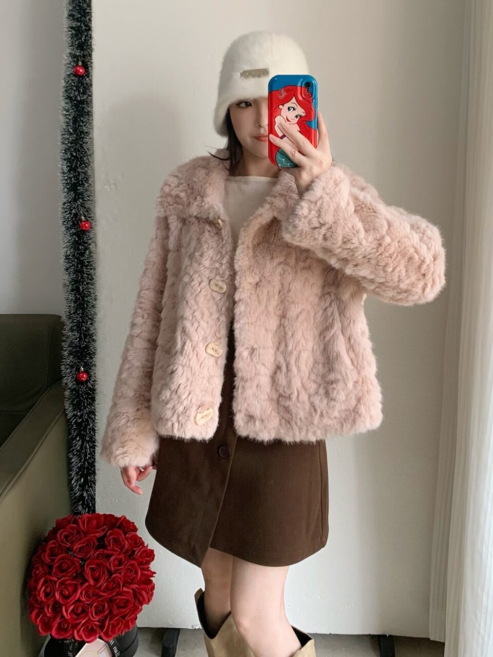 着回し力抜群!ピンクのモコモコショートコート