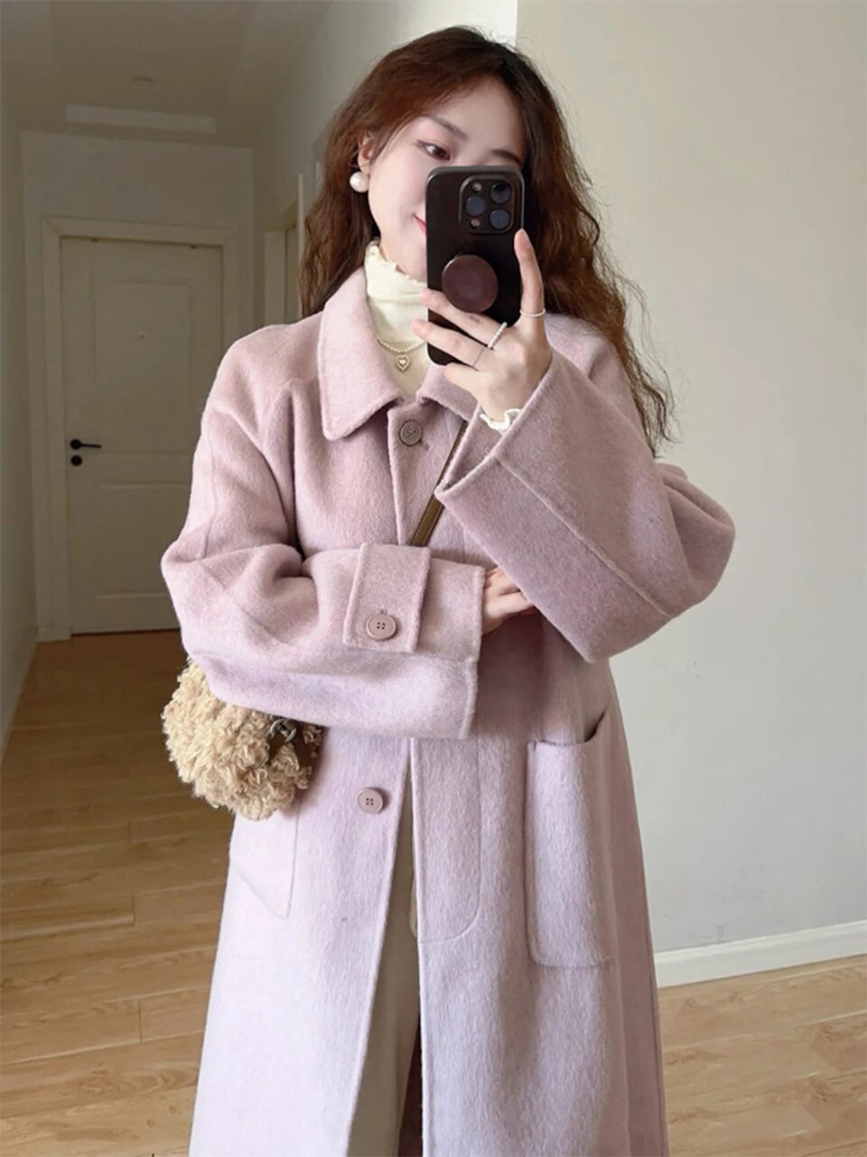 優しい大人ピンクのロングコート