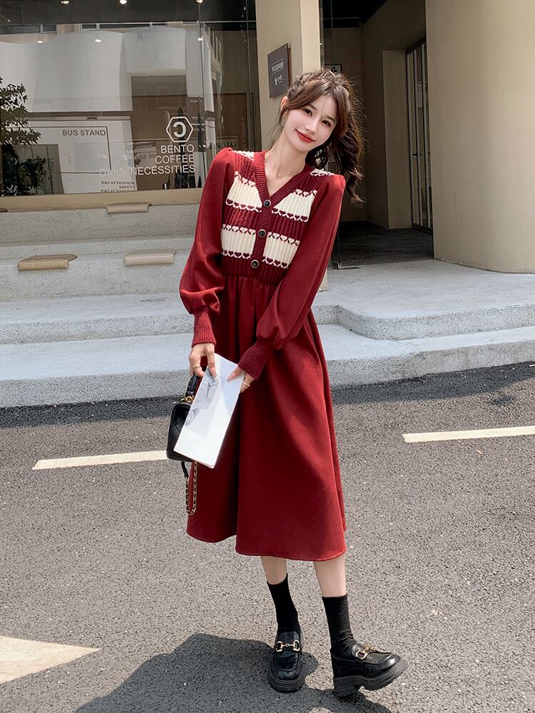 レトロ感がある赤いワンピは、ほっこり感もあって冬によく似合うもの。