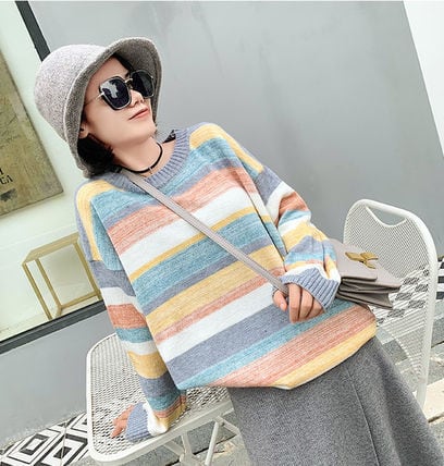 普通のボーダーはつまらないという方には、線の太さや配色がランダムに配置された、アートみたいなニットもおすすめです。