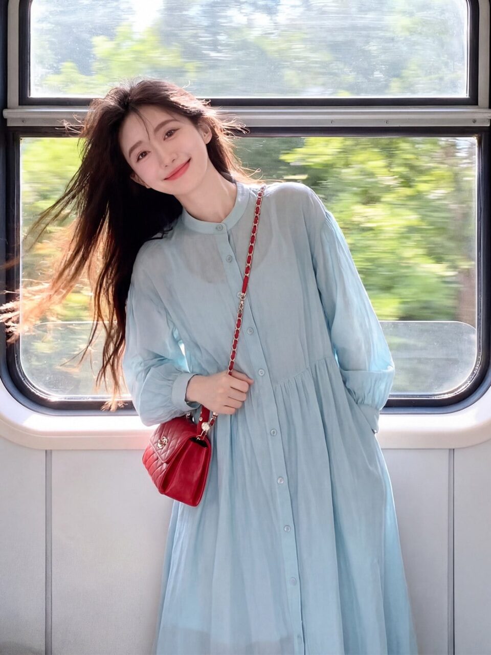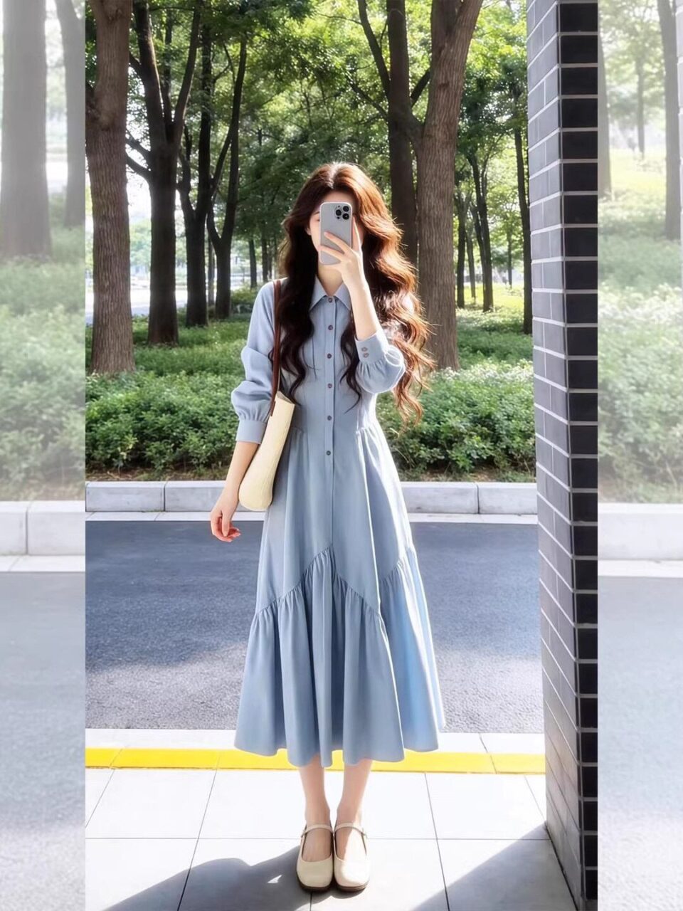 明るい水色より落ち着いているから大人でも着こなしやすいし、夏とは違った雰囲気を楽しめるので、まさに春にこそよく似合います。