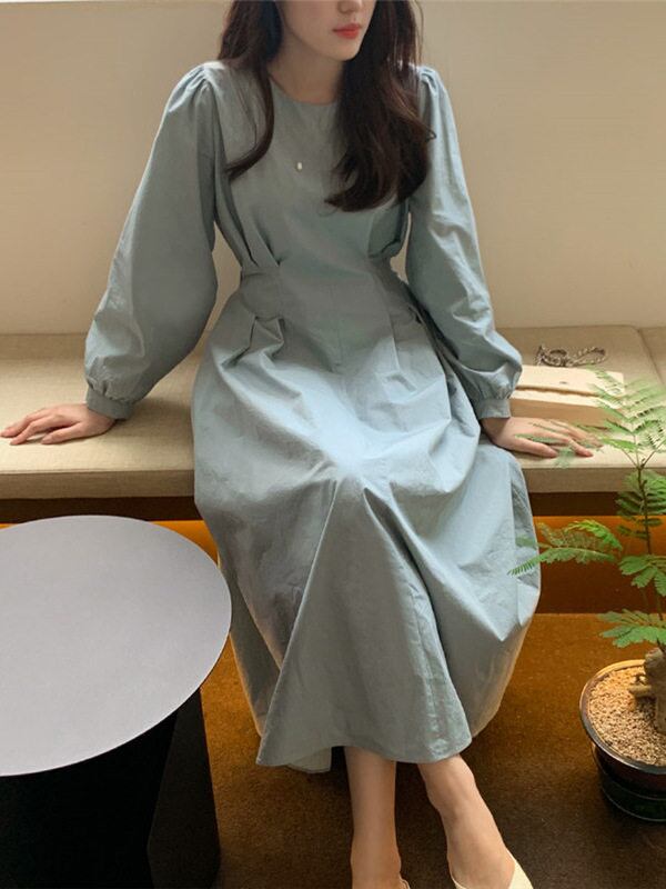 大人っぽいコーデをお好みの方に似合う、シンプルなドレス風長袖ワンピです。