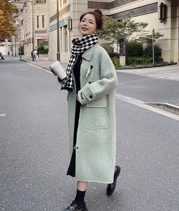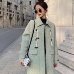 カジュアルミッドレングスホーンボタン白肥厚ウールコートは、女性のための2024新しい冬のデザインでおしゃれ感満載のアイテムです。暖かい肥厚ウール素材で作られており、寒い冬に最適な暖かさを提供します。独特のミッドレングスデザインとホーンボタンが特徴で、スタイリッシュな着こなしを演出します。
