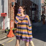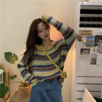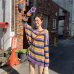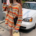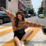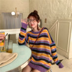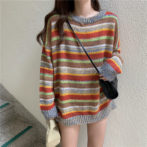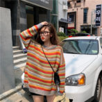 カラフル ボーダー ゆったり ニット セーター ガーリー 4色