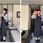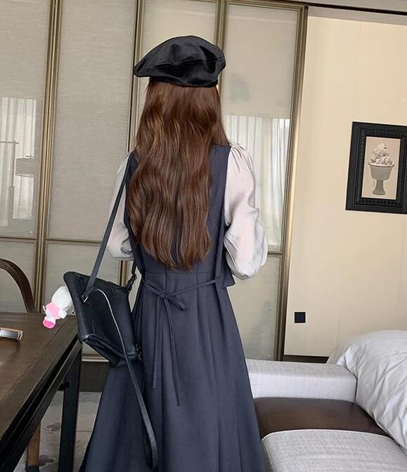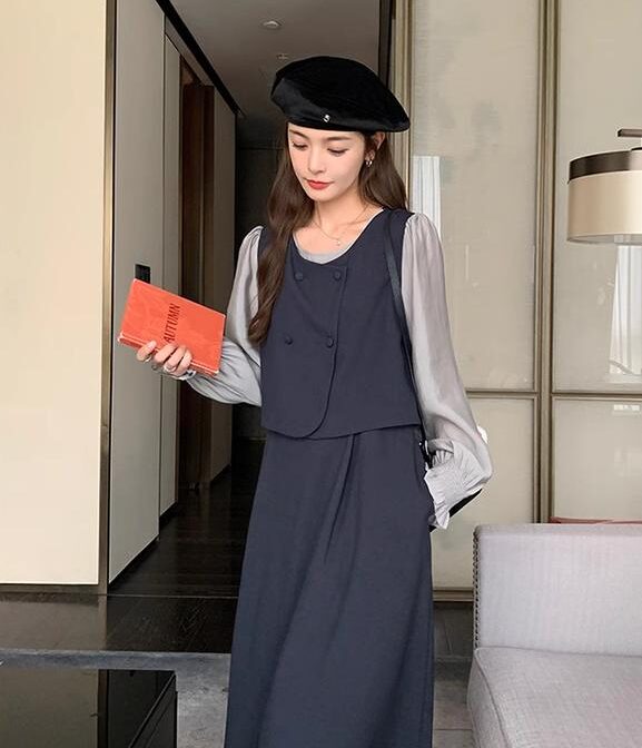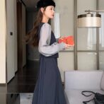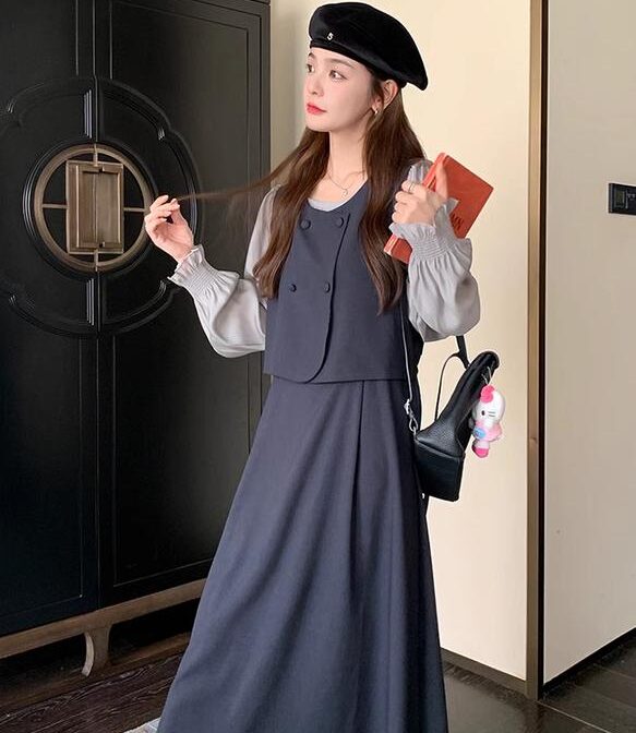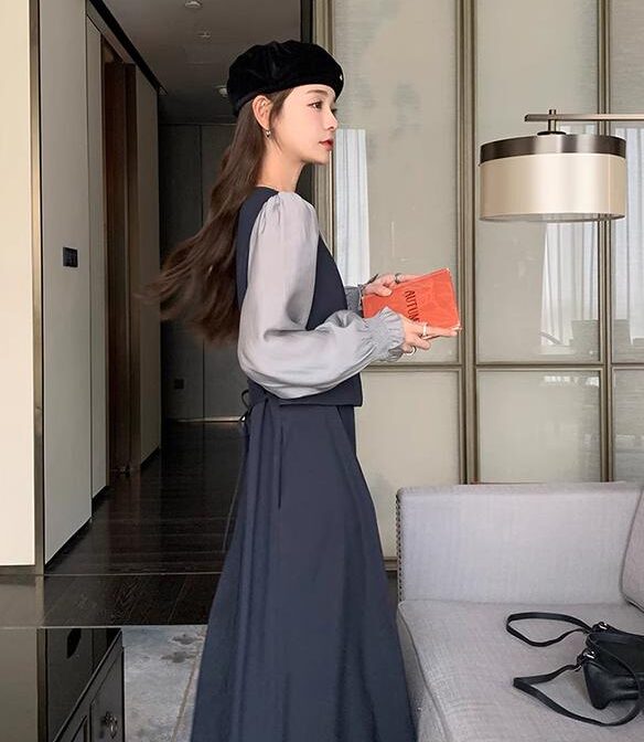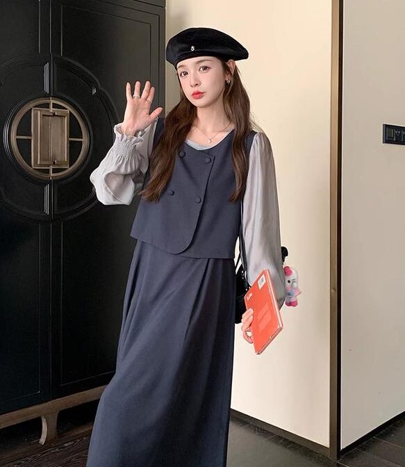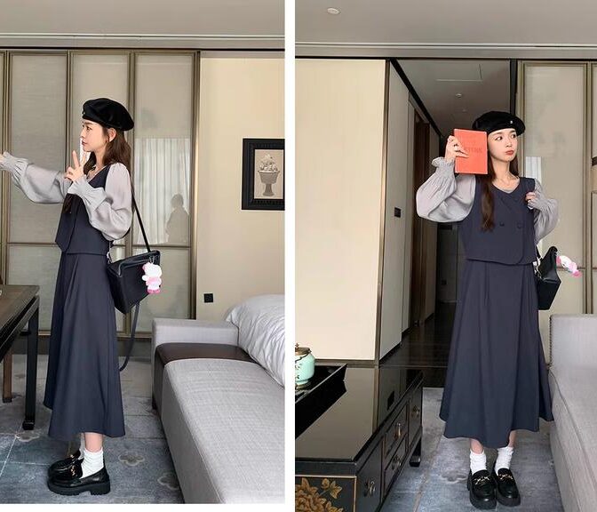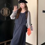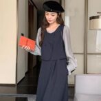カレッジスタイル ツーピーススプライシングドレス A ラインスカート