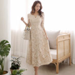 ヌードカラーで大人っぽく高級感のあるワンピースです♪