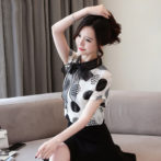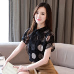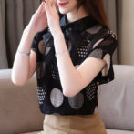 シャツ ブラウス シフォン リボンタイ フレンチ袖 2色