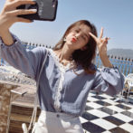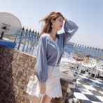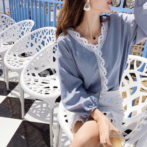シャツ ブラウス レース襟 パフスリーブ 長袖