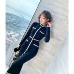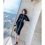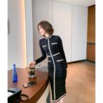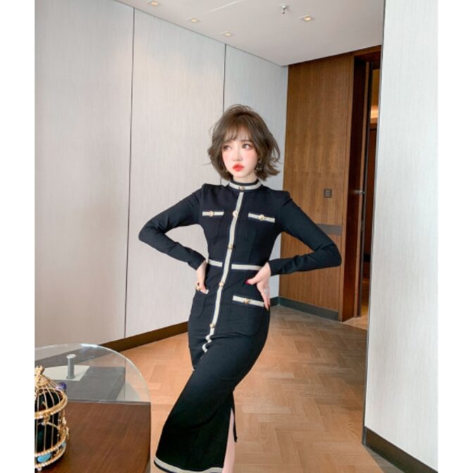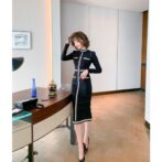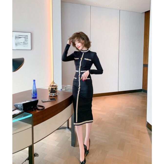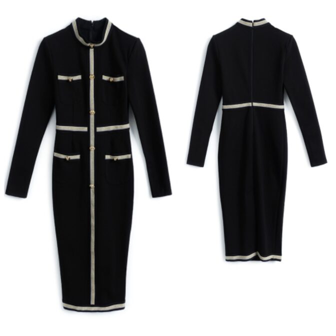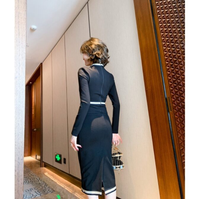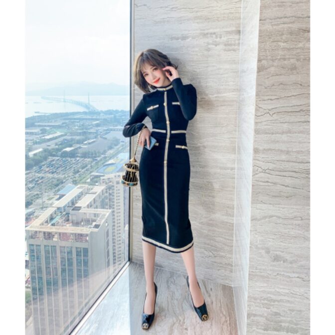 スタンドカラーでさらに上品♪ ライン タイト ワンピース