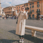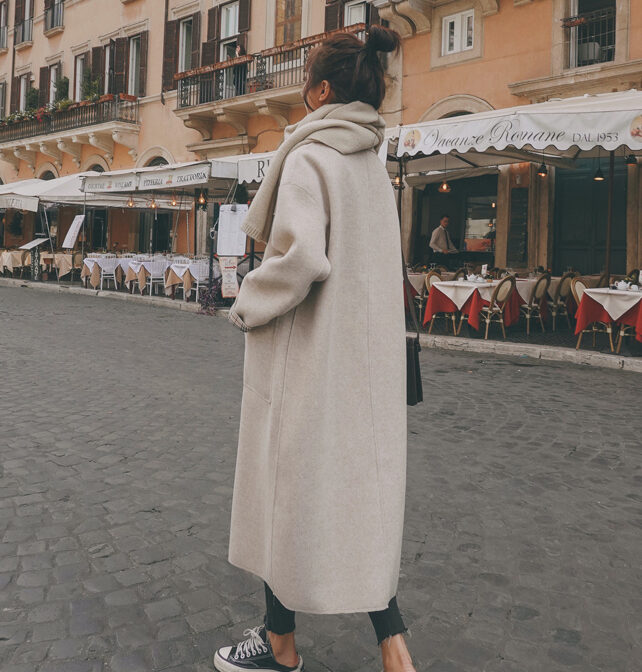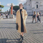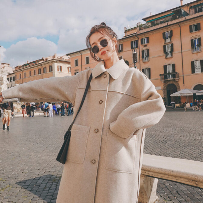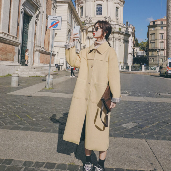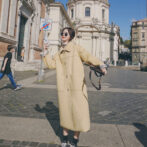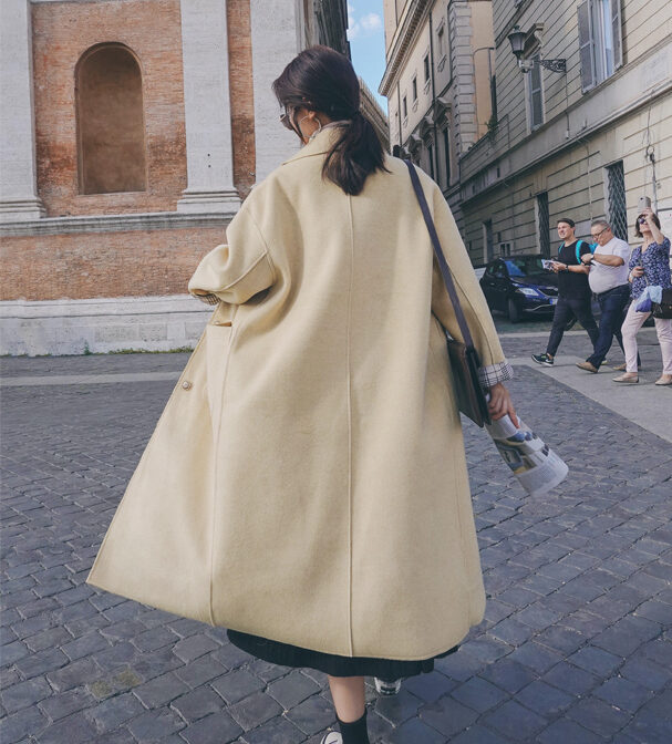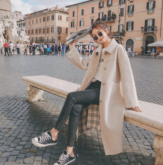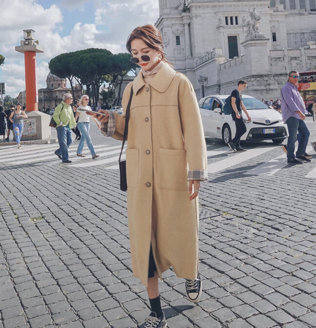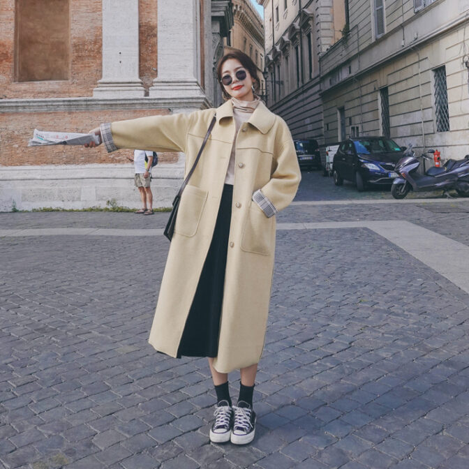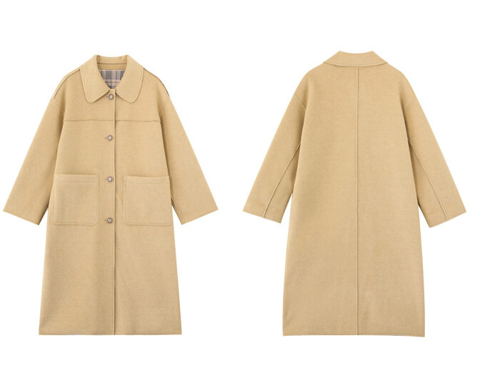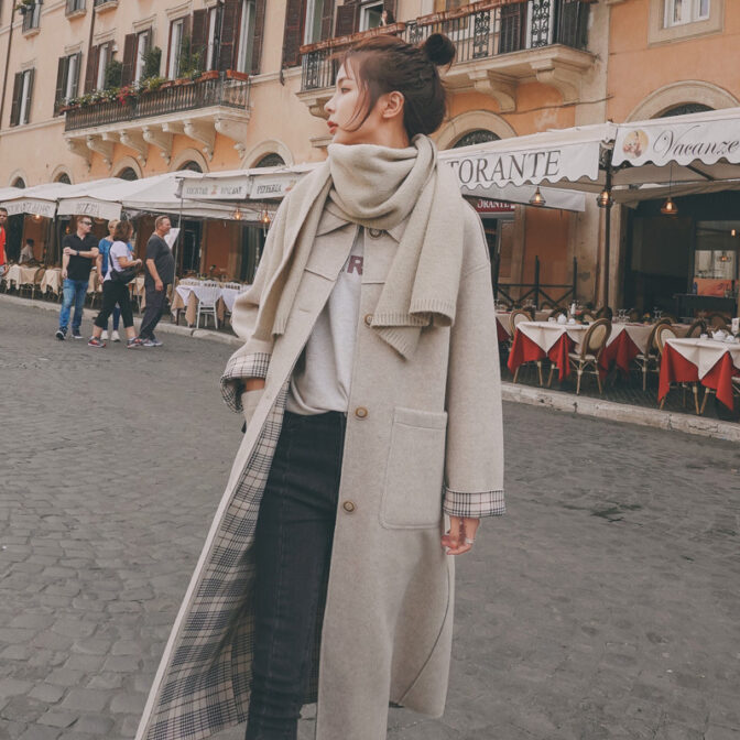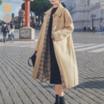 ステンカラーコート 薄手 膝丈 裏地チェック クラシカル 定番