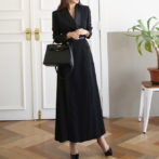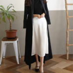 バイヤー本人158cm46kg、Sサイズが気持ち大きめです。丈はミモレ丈となります。