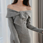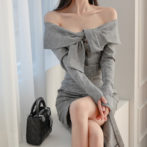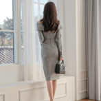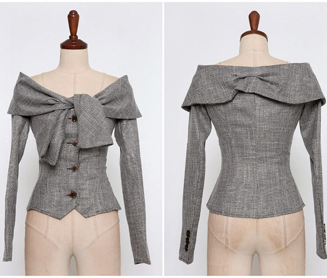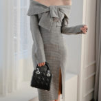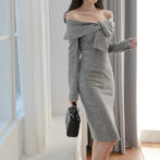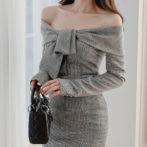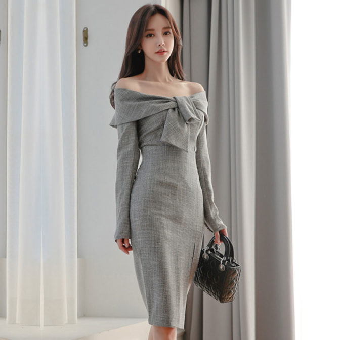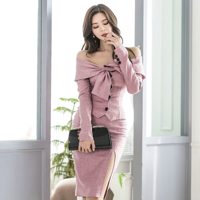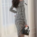 セットアップ チェック オフショルダー 魅デコルテ 深めスリット