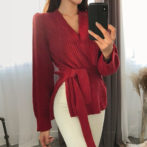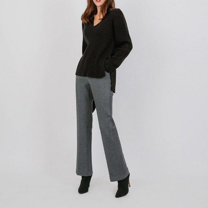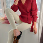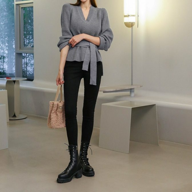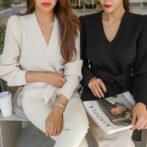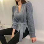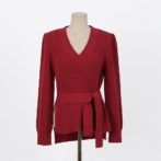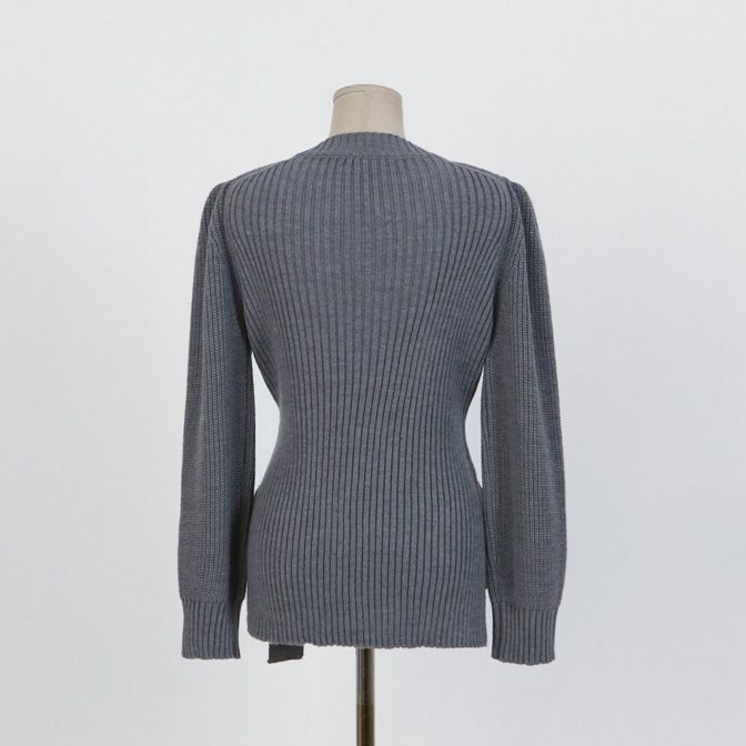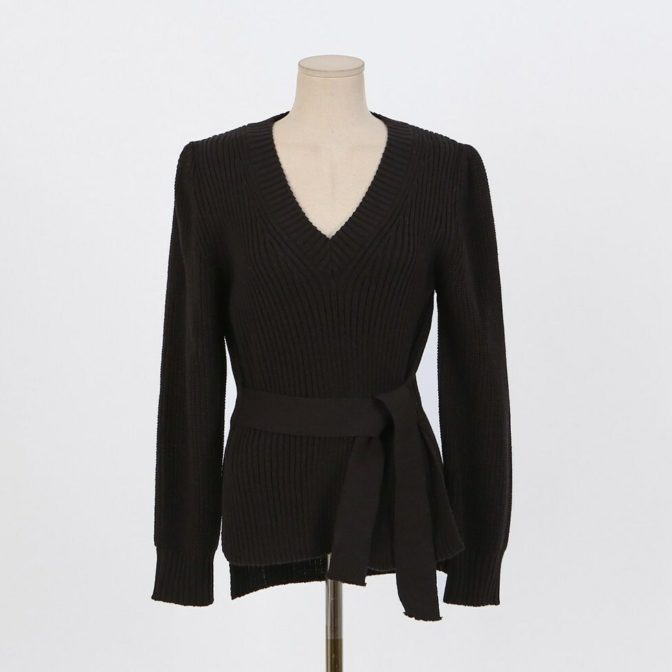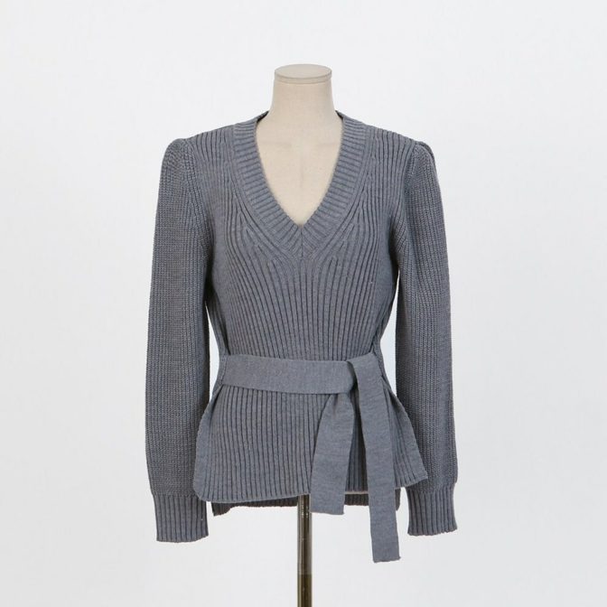セーター パフショルダー ステップドヘム スリット ベルト 4色