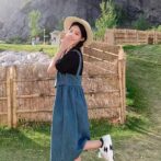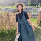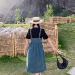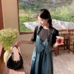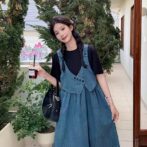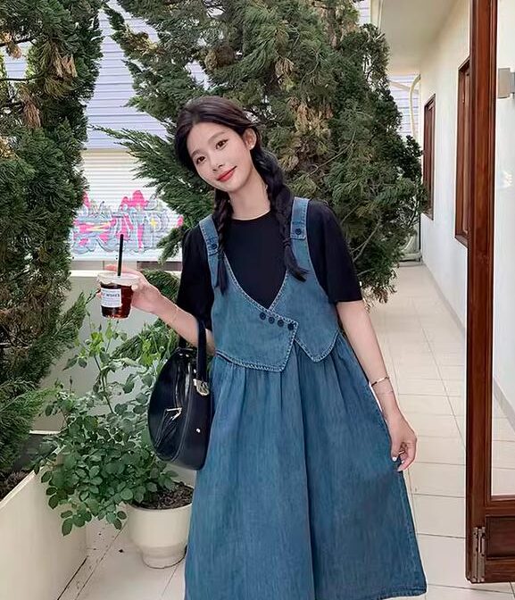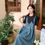デニムスプライシング ツーピースカジュアルドレス ニッチミドル丈スカート