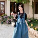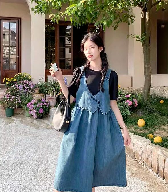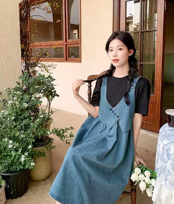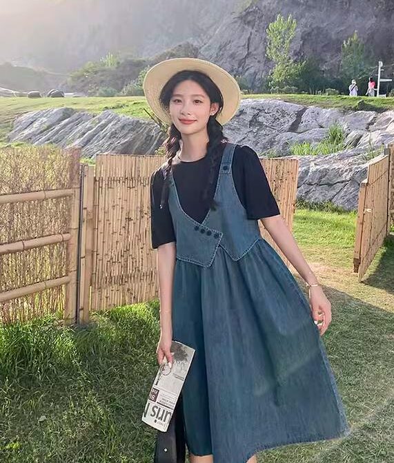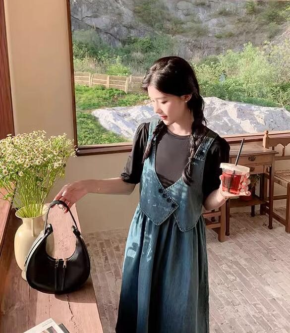 デニムスプライシング ツーピースカジュアルドレスは、カジュアルな着こなしにおすすめのアイテムです。デニム素材とスプライシングデザインが絶妙にマッチした、今季注目のアイテム。特にニッチミドル丈スカートは、周りと差がつくユニークなデザインで、おしゃれ度をアップしてくれます。