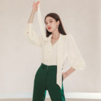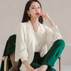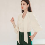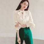 トップ ブラウス リボンカラー ゆったりスリーブ カフス 上品