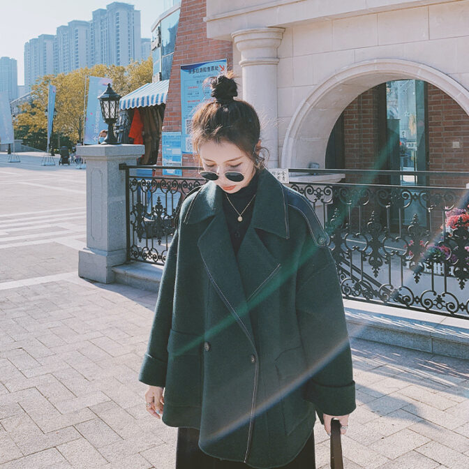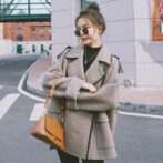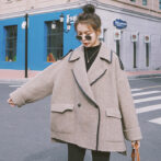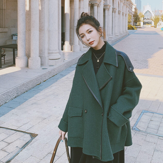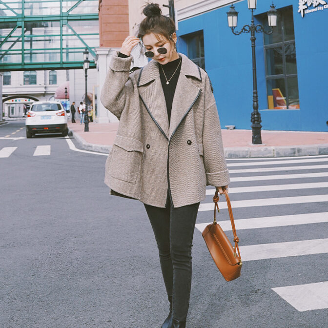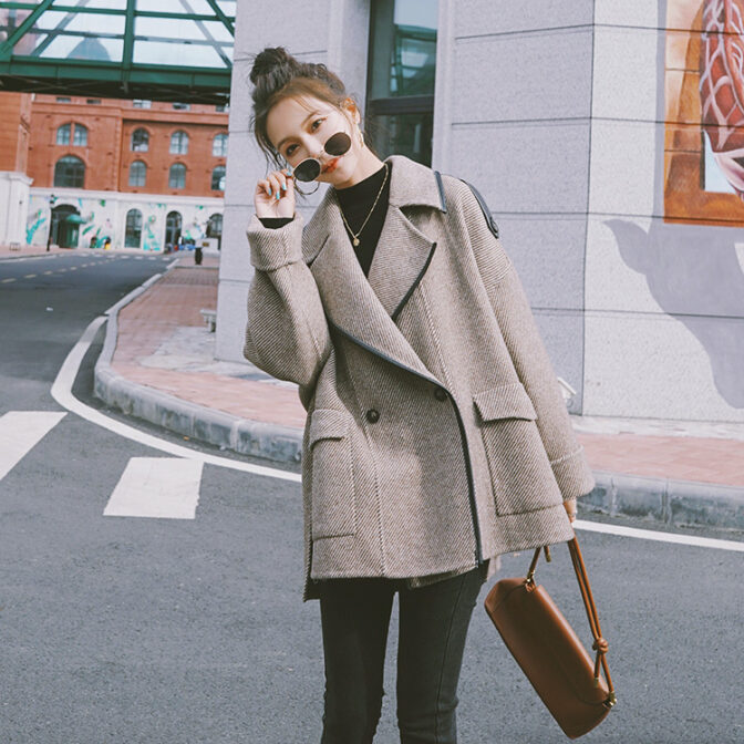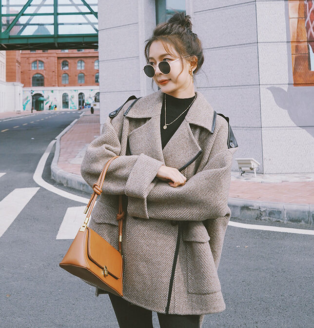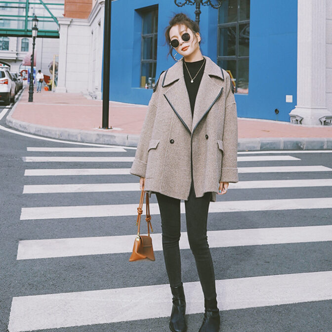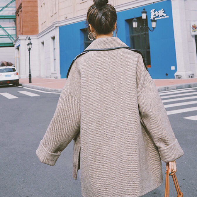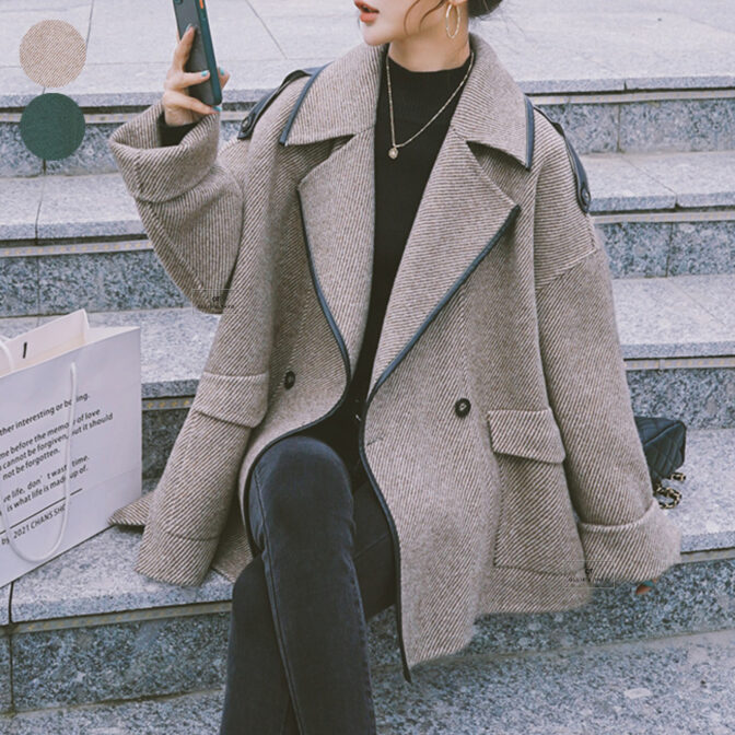 ハーフコート ツイード風 ルーズ ステップドヘム パイピング