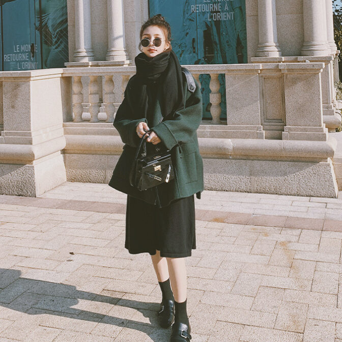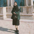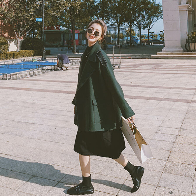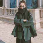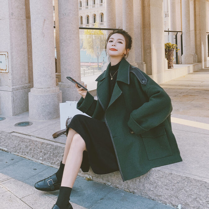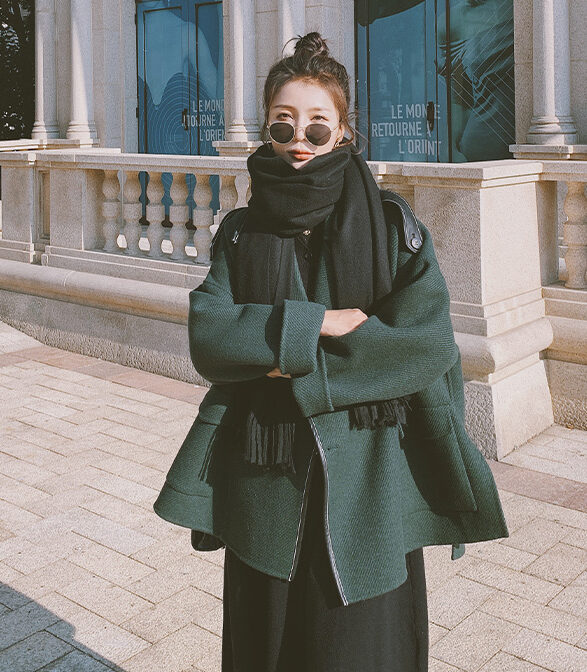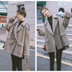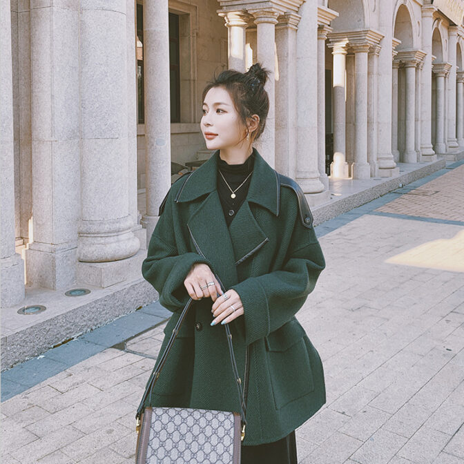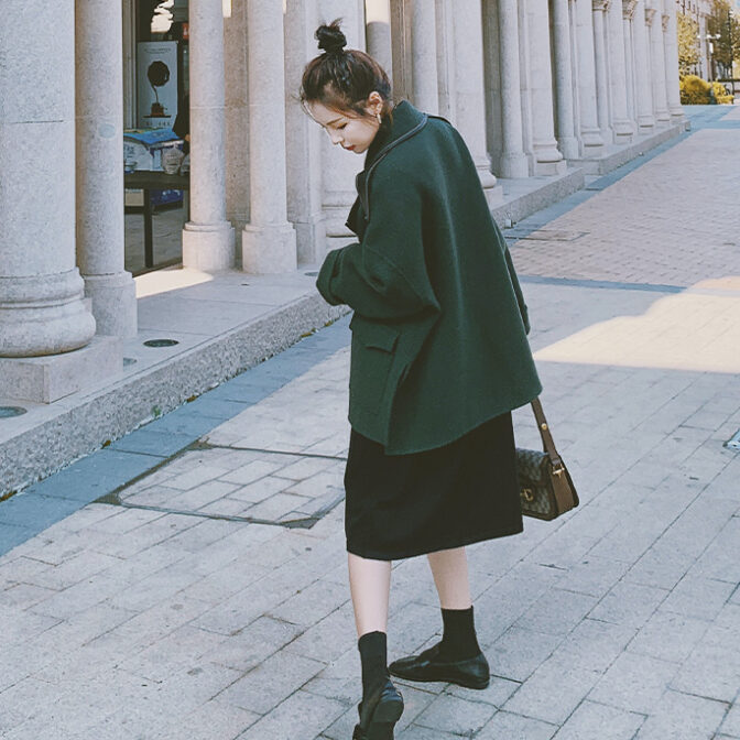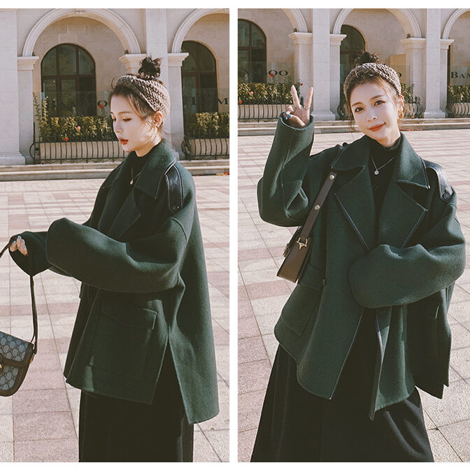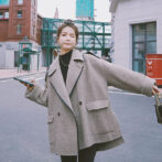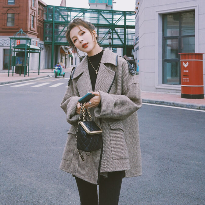 ハーフコート ツイード風 ルーズ ステップドヘム パイピング