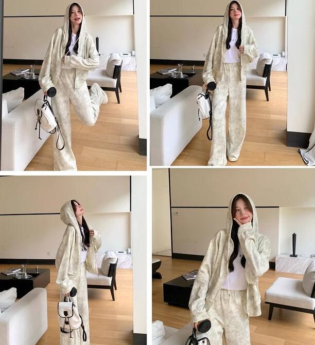 ファッショナブルなフード付きカーディガントレーナーパンツ 2 点セット。忙しい朝でもおしゃれを楽しみたい人におすすめのセットアイテムです。カジュアルなトレーナーとおしゃれなカーディガンが1セットで手に入り、コーディネートも簡単です。様々なシーンで活躍してくれる万能アイテムです。一度着たら手放せない、着心地の良さも自慢のアイテムです。