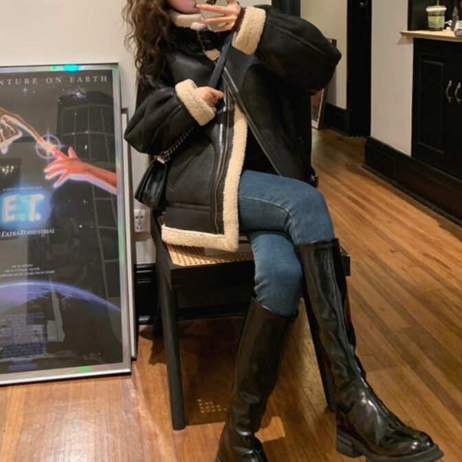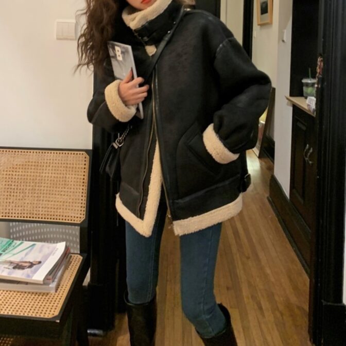 新しいフェイクムートン フライトジャケットを取り入れて、冬のコーディネートに新たなスタイルを加えてみませんか?デニムやタートルネックとの組み合わせで、カジュアルかつ洗練された冬のファッションを楽しむことができます。ぜひ、このコレクションに追加して、あなたの冬のマストアイテムにしてください!