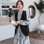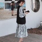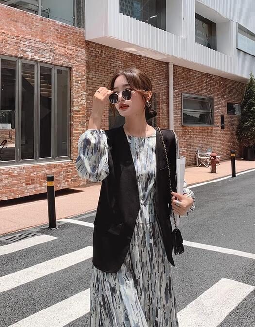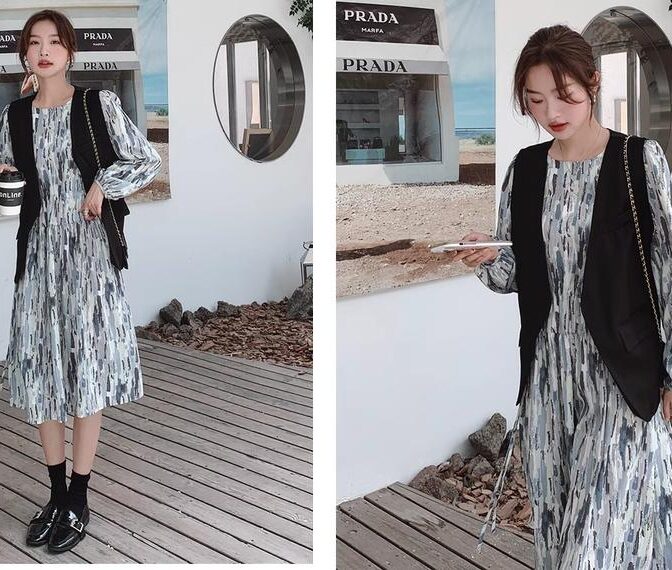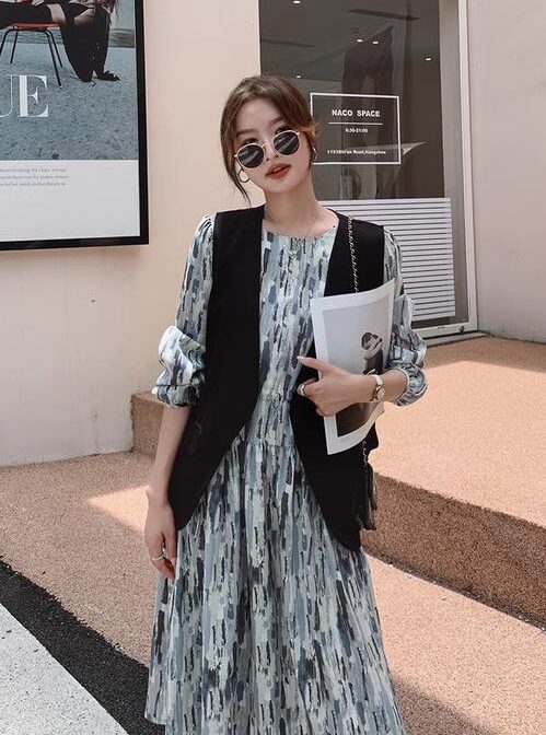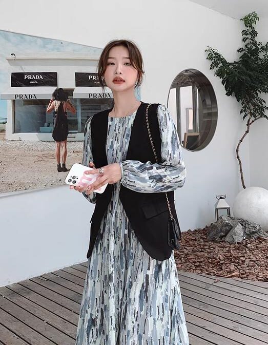 フランスのロマンチックな雰囲気が漂う、絞り染めのドレスとベストの2点セット。女性らしい上品さと華やかさが詰まった、春と秋にぴったりのハイエンドなスーツスカートです。上品な色合いと繊細な柄が、あなたを一層輝かせます。
