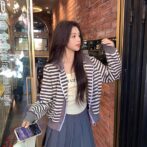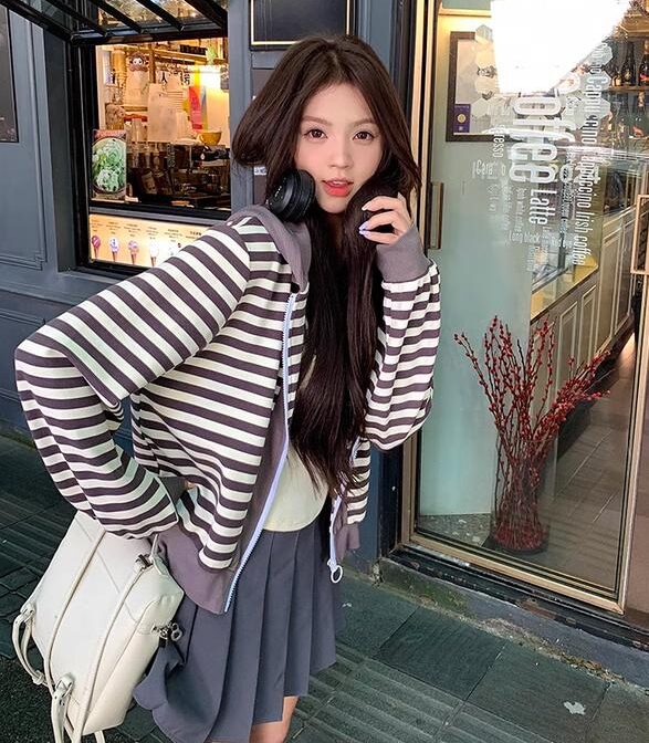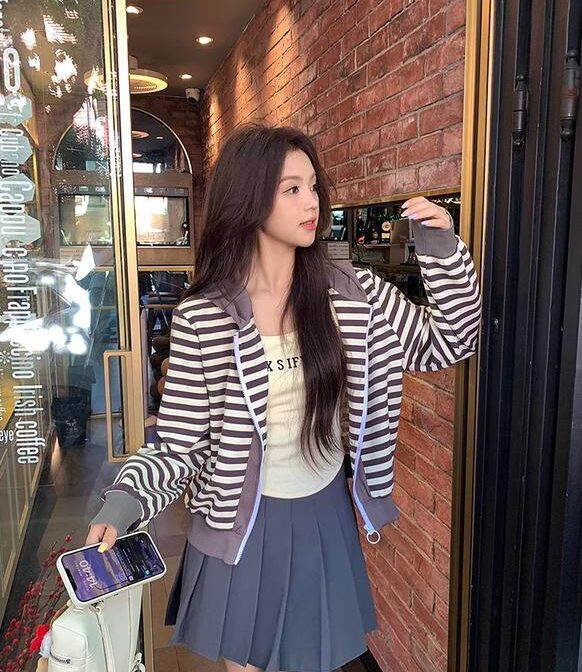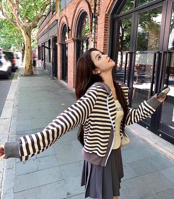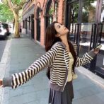 フレンチレトロストライプフード付きカーディガンジャケットは、まるで時を超えたような懐かしさとエレガンスが溢れる一枚。贅沢なひとときを過ごしたい方にぴったりのアイテムです。きっとあなたのファッションスタイルに新たな輝きを与えてくれることでしょう。