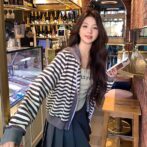 フレンチレトロストライプフード付きカーディガンジャケットは、上品なフレンチレトロデザインが特徴のアイテムです。シックなストライプ柄がジャケット全体を引き締め、フードがついているので、防寒対策もバッチリ。オシャレな着こなしを楽しみたい方におすすめの一枚です。