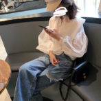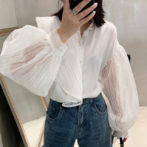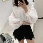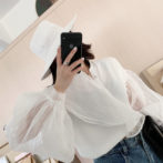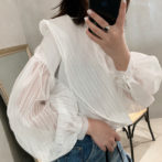ブラウス ボリュームスリーブ シースルー アシンメ