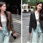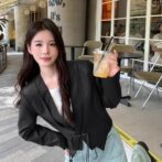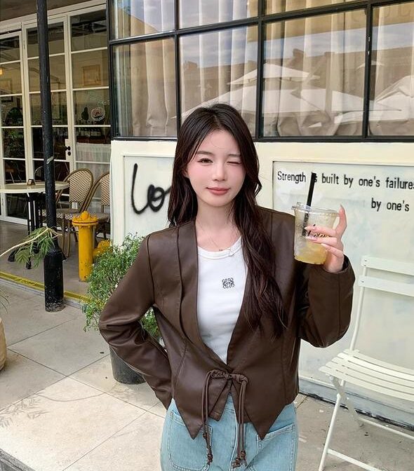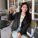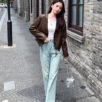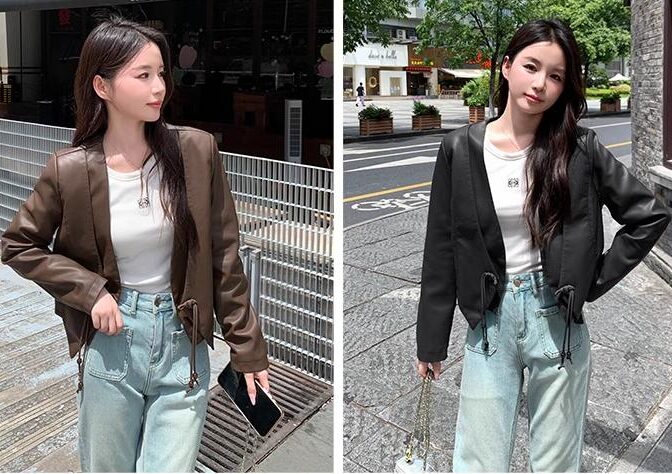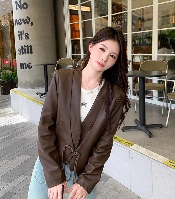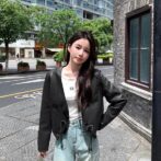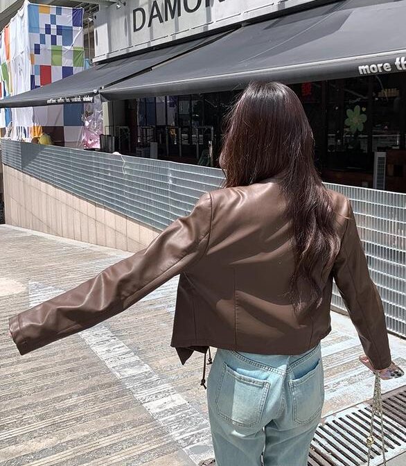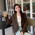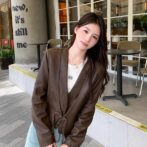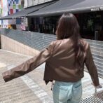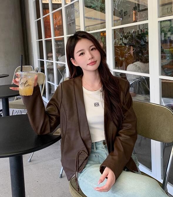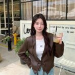 ブラウンバックルレザージャケット ファッションカジュアルニッチデザイン